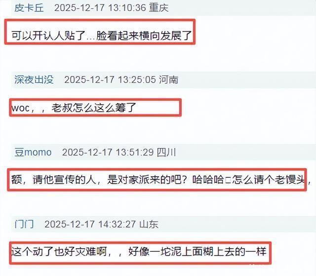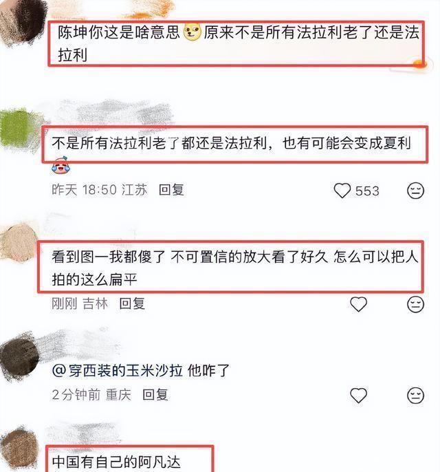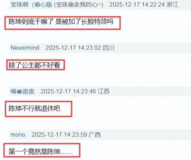 其中,陈坤因脸部状态变化太大,遭到了网友的群嘲。主要集中在其脸部像是被开了拉长的特效,而鼻子又特别扁平,被质疑动了刀。甚至被劝实在不行就退休吧。